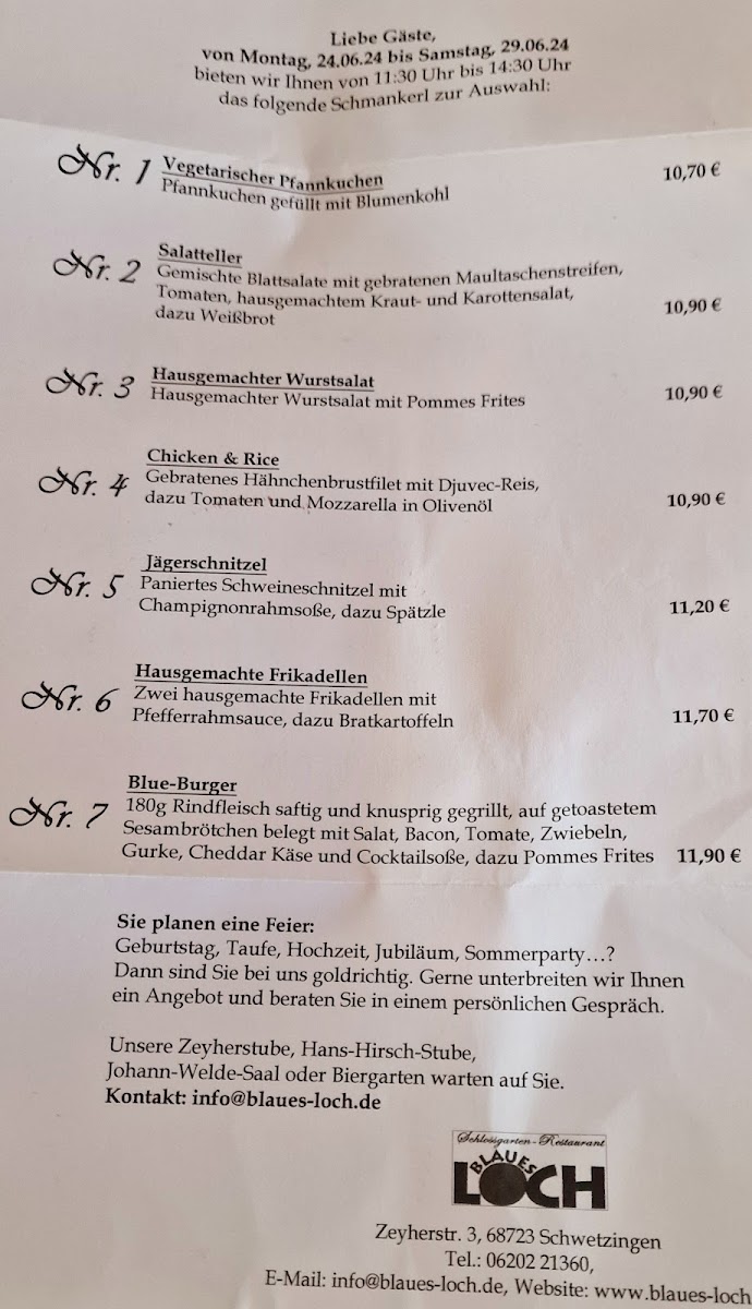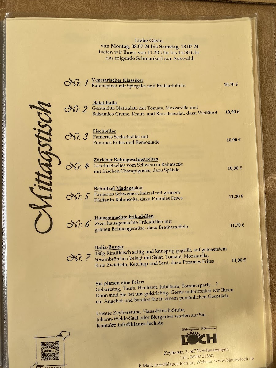Celebrations such as weddings are beautifully hosted here, as shared by Julius Schrapel, who praised the accommodating staff and the stunning setting. The delightful meals, as noted by Sandra Martin, paired with warm service, create a lovely dining experience. Whether you prefer the cozy indoors or the scenic patio, Schlossgartenrestaurant 'Blaues Loch' offers a nice blend of nostalgia, warmth, and community spirit, making it a memorable dining destination.